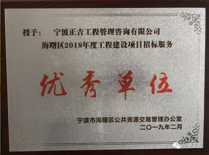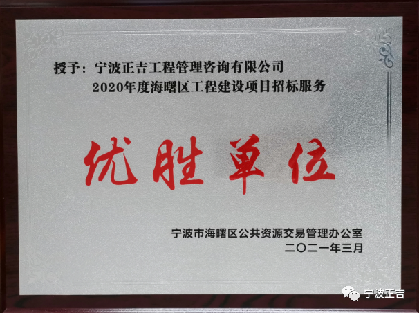 热烈祝贺正吉招标代理2018-2020年度连续三年获得优秀