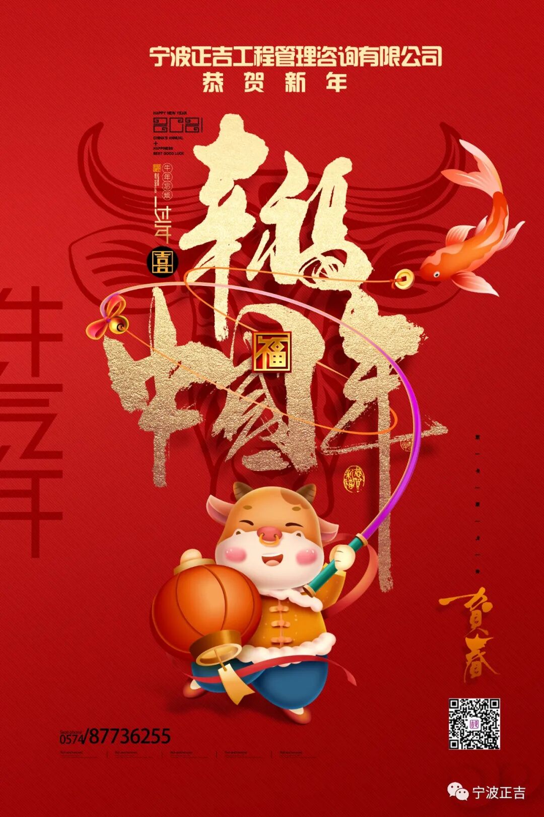 红灯高挂,照亮的是吉祥!鞭炮声声,响彻的是安康!在此金牛贺春之际,宁波正吉工程管理咨询有限公司总经理携全体员工给大家拜年了!