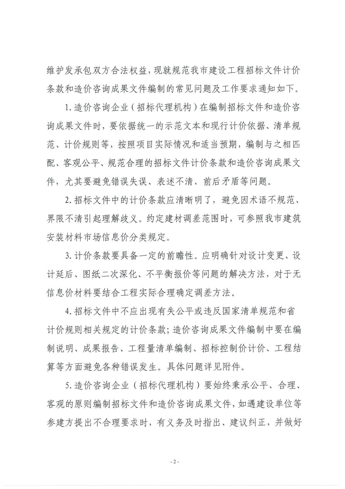 关于规范我市建设工程招标文件计价条款和造价咨询成果文件编制工作的通知