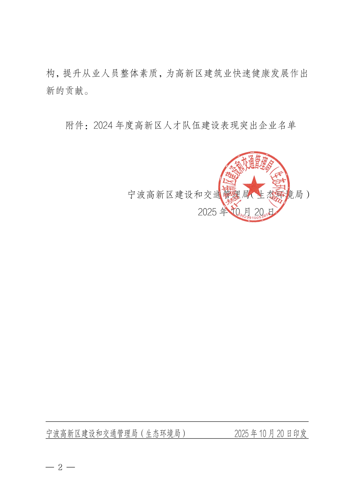我司被评为2024年度高新区人才队伍建设表现突出企业